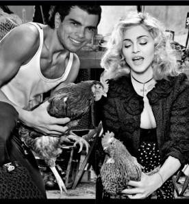 “I’m tired of making montages with Madonna’s pictures. I want a real one: with or without chickens!”